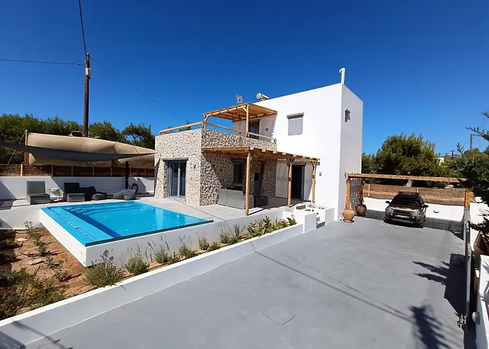 Vilianna med 3 sovrum, som ligger cirka 15 minuters bilresa från Papafragas strand, har soldäck, solterrass och uteplats för gästerna. Villan med 3 badrum erbjuder möjligheter till snorkling, dykning och kanotpaddling i området, cirka 10 minuter med bil från Tsigrado strand.